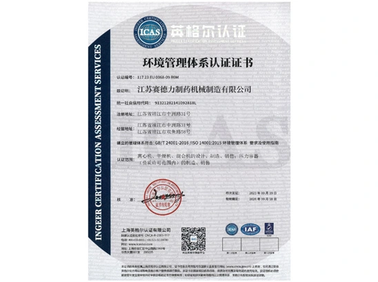 강소 사이 델리 제약 기계 제조 유한 회사는 첨단 과학 연구 및 생산 기업입니다. 1953 년에 설립 된 본사는 중국의 경제적으로 개발 된 양쯔강 삼각주 지역의 장쑤성 징장시에 위치하고 있습니다. 이제 Saideli는 독특한 경제 환경과 지리적 위치뿐만 아니라 아름다운 환경을 누리고 있습니다. 성숙한 Saideli의 Jiangyin Changjiang Highway Bridge의 북쪽 끝에 위치하고 있습니다.산업 원심 분리기 기계 공장, 베이징-상하이 고속도로, 난징-통지 고속도로, 통산 고속도로 및 옌장 고속도로와 인접 해 있으며 상하이 및 난징 시까지 쉽게 도달 할 수 있습니다. 원심 및 전문 제조 업체로서건조 원심 분리기, Saideli는 현재 중국 분리 기계 표준화 기술위원회의 회원 단위, 중국 제약 원심 분리 기계 요구 사항 (JB/T20139-2011), 중국 분리 기계 산업 협회 부회장 단위, 국가 제약 장비 표준화 기술위원회의 회원 단위, 중국 일반 기계 산업 협회의 이사 단위, 국가 하이테크 기업, 중국 화학 제약 산업 협회의 부사장 및 중국 지능형 제약 장비 전문가위원회의 이사 단위; 또한, 우리는 압력 용기 특수 장비에 대한 중국의 제조 면허를 가지고 있습니다. 총 면적 500,000m2 를 차지하는 Saideli Company는 Jiangsu Saideli 제약 기계 제조 유한 회사, Jiangsu Zhongyi 에너지 절약 기술 유한 회사와 같은 11 개의 주요 모듈로 구성되어 있습니다. 강소 중이 환경 보호 기술 유한 회사, Jingjiang Saideli 미세 여과 장비 유한 회사, Jingjiang Saideli 에코 농업 유한 공사, 그리고 강소 펑싱 섬유 유한 공사, 등.